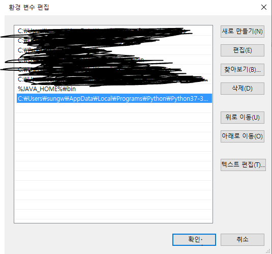 - python이 설치된 경로에 가서 경로 Python버전/Scripts 까지 Path에 추가