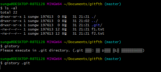 .git이 들어있는 폴더에서 gistory를 실행해야 한다.
