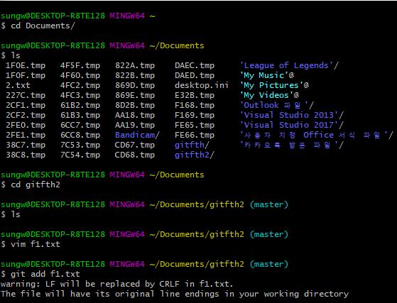 새로운 폴더를 만들고 git init을 한 뒤에 f1.txt 파일을 생성하겠습니다.