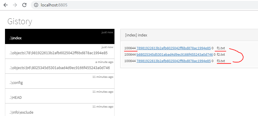 objects폴더 밑에 f1.txt의 파일이 생겼습니다.