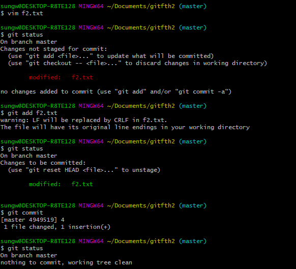 nothing to commit, working tree clean 이라는 메시지를 보게 됩니다.